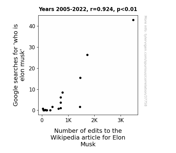 See what else correlates with Number of edits to the Wikipedia article for Elon Musk