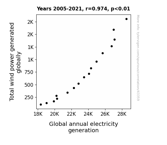 See what else correlates with Total wind power generated globally
