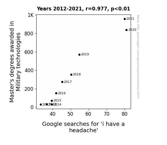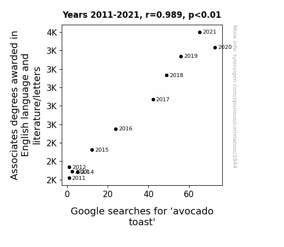 This is exacerbated by the fact that I used "Years" as the base variable. Lots of things happen in a year that are not related to each other! Most studies would use something like "one person" in stead of "one year" to be the "thing" studied. - Observations not independent: For many variables, sequential years are not independent of each other. You will often see trend-lines form. If a population of people is continuously doing something every day, there is no reason to think they would suddenly change how they are doing that thing on January 1. A naive p-value calculation does not take this into account.