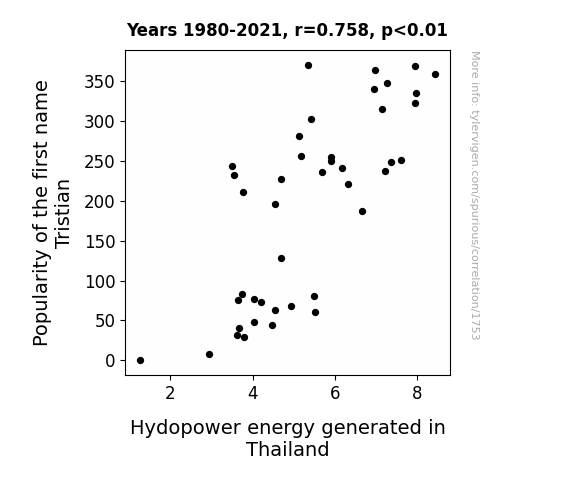 This is exacerbated by the fact that I used "Years" as the base variable. Lots of things happen in a year that are not related to each other! Most studies would use something like "one person" in stead of "one year" to be the "thing" studied. - Observations not independent: For many variables, sequential years are not independent of each other. You will often see trend-lines form. If a population of people is continuously doing something every day, there is no reason to think they would suddenly change how they are doing that thing on January 1. A naive p-value calculation does not take this into account.