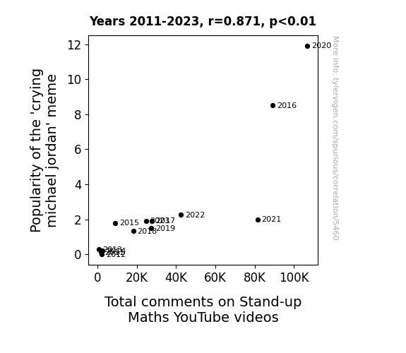 This is exacerbated by the fact that I used "Years" as the base variable. Lots of things happen in a year that are not related to each other! Most studies would use something like "one person" in stead of "one year" to be the "thing" studied. - Observations not independent: For many variables, sequential years are not independent of each other. You will often see trend-lines form. If a population of people is continuously doing something every day, there is no reason to think they would suddenly change how they are doing that thing on January 1. A naive p-value calculation does not take this into account.