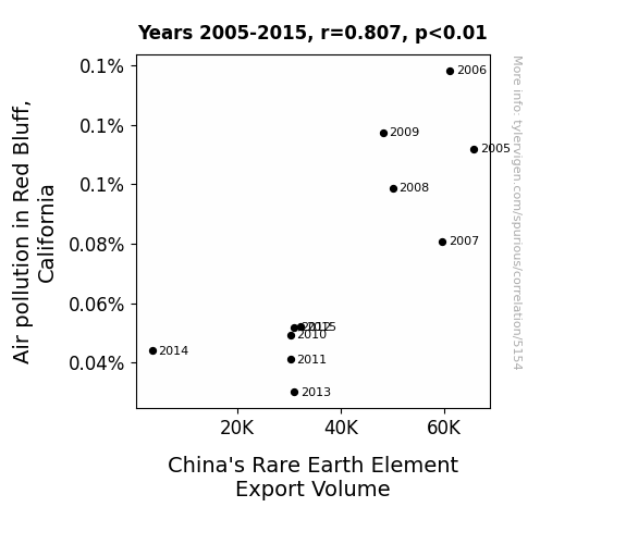 This is exacerbated by the fact that I used "Years" as the base variable. Lots of things happen in a year that are not related to each other! Most studies would use something like "one person" in stead of "one year" to be the "thing" studied. - Observations not independent: For many variables, sequential years are not independent of each other. You will often see trend-lines form. If a population of people is continuously doing something every day, there is no reason to think they would suddenly change how they are doing that thing on January 1. A naive p-value calculation does not take this into account.