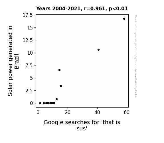 This is exacerbated by the fact that I used "Years" as the base variable. Lots of things happen in a year that are not related to each other! Most studies would use something like "one person" in stead of "one year" to be the "thing" studied. - Observations not independent: For many variables, sequential years are not independent of each other. You will often see trend-lines form. If a population of people is continuously doing something every day, there is no reason to think they would suddenly change how they are doing that thing on January 1. A naive p-value calculation does not take this into account.