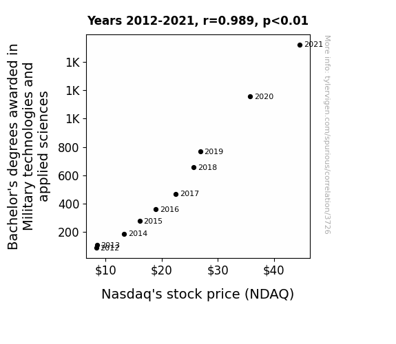 Instead of starting with a hypothesis and testing it, I isntead tossed a bunch of data in a blender to see what correlations would shake out. It’s a dangerous way to go about analysis, because any sufficiently large dataset will yield strong correlations completely at random. - Lack of causal connection: There is probably no direct connection between these variables, despite what the AI says above.