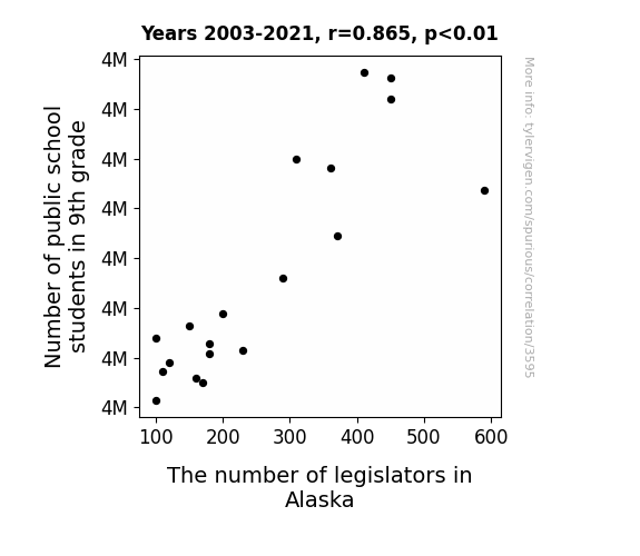 Instead of starting with a hypothesis and testing it, I isntead tossed a bunch of data in a blender to see what correlations would shake out. It’s a dangerous way to go about analysis, because any sufficiently large dataset will yield strong correlations completely at random. - Lack of causal connection: There is probably no direct connection between these variables, despite what the AI says above.
