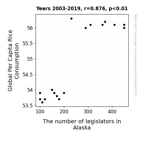 This is exacerbated by the fact that I used "Years" as the base variable. Lots of things happen in a year that are not related to each other! Most studies would use something like "one person" in stead of "one year" to be the "thing" studied. - Observations not independent: For many variables, sequential years are not independent of each other. You will often see trend-lines form. If a population of people is continuously doing something every day, there is no reason to think they would suddenly change how they are doing that thing on January 1. A naive p-value calculation does not take this into account.