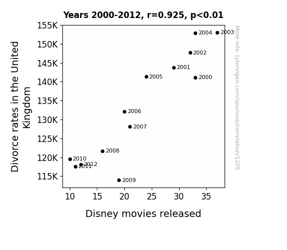 - The spurious research paper: Dissolution and Disney: Divorce Rates in the United Kingdom and Theatrical Tales of Tangled Ties