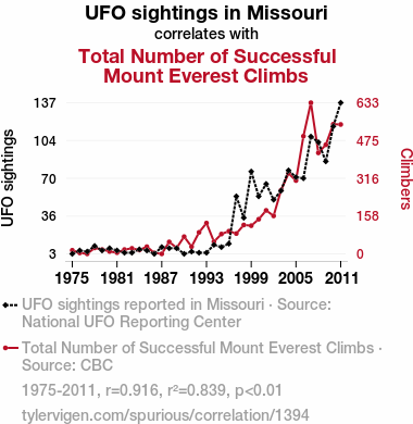UFO sightings, Mount Everest climbs, correlation, statistical analysis, National UFO Reporting Center, Christchurch City Council, Missouri, extraterrestrial, aliens, peak performance, relationship, p-value, enigma, high-altitude hospitality