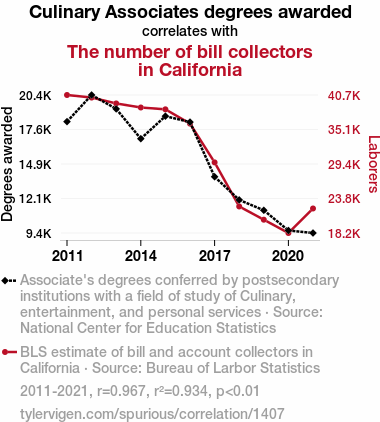 - The spurious research paper: Cooking Up Debt: The Relationship Between Culinary, Entertainment, and Personal Services Associate Degrees and the Number of Bill Collectors in California