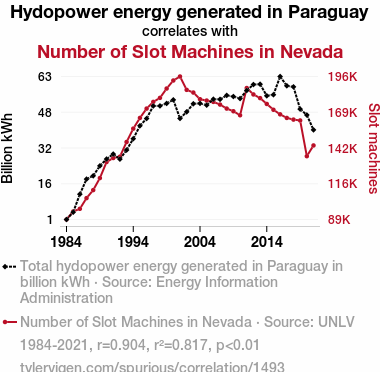 - The spurious research paper: Spinning the Wheel: Exploring the Link between Paraguayan Hydropower and the Slot Machine Phenomenon in Nevada