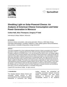 "Shedding Light on Solar-Powered Cheese: An Analysis of American Cheese Consumption and Solar Power Generation in Morocco"