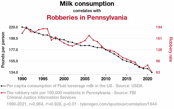 - The spurious research paper: The Dairy Dilemma: Milk Consumption and Robbery Rates in Pennsylvania