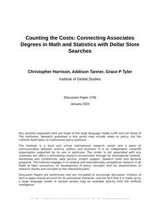 Counting the Costs: Connecting Associates Degrees in Math and Statistics with Dollar Store Searches The Journal of Comedic Economics Jan 2024 Reminder: This paper is AI-generated. Not real! |