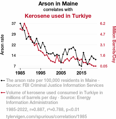 - The spurious research paper: Playing with Fire: A Flammable Connection Between Arson in Maine and Kerosene consumption in Turkiye