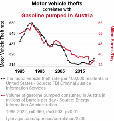- The spurious research paper: Fueling the Fire: The Gas-Tly Connection Between Motor Vehicle Thefts and Gasoline Pumped in Austria