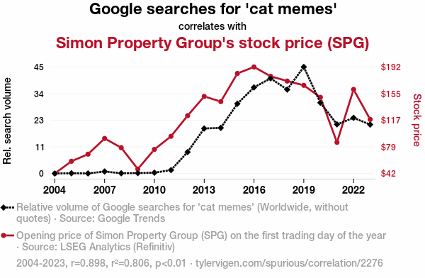 - The spurious research paper: Cognitive Correlations: Cat Memes and Simon Property Group's Stock Sensitivity
