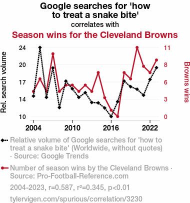 "snake bite treatment search, football team performance correlation, Google Trends analysis, Pro-Football-Reference.com data, human behavior in sports, Cleveland Browns victories, unusual online habits, serpentine remedies connection, correlation coefficient significance, search behavior analysis"
