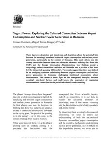 In light of the multifaceted literature - both scholarly and fictional - as well as the intriguing insights offered by online discourse, the present study seeks to elucidate the intricate interplay between yogurt consumption and nuclear power generation in Romania.