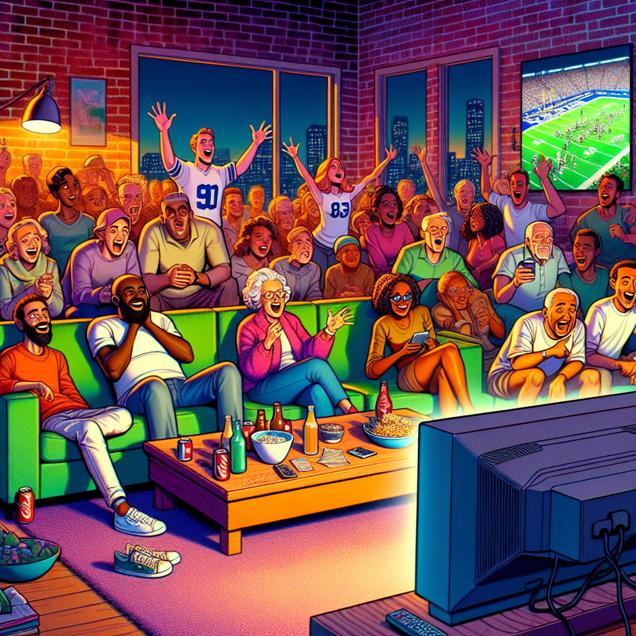 ChatGPT: In a bustling living room, the TV screen shows the score of the Super Bowl with the winning team leading by a wide margin. Fans are looking despondent as they watch the game. Meanwhile, a group of people huddle around a laptop, feverishly typing "teenage mutant ninja turtles" into the search bar, eager for a dose of turtle power to lift their spirits.