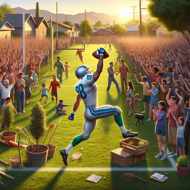Prompt: [ A photo-realistic image ] Generate a scene in which Cristiano Ronaldo is shown scoring a goal in a vibrant Arizona community. As he celebrates, the crowd around him erupts into cheers and applause. Meanwhile, in the background, a growing number of people are seen joining hands to plant trees and clean up the local environment, inspired by Ronaldo's achievement. Additionally, the image reflects the increasing number of conservation scientists in Arizona through subtle visual cues, such as individuals conducting research or engaging in environmental conservation activities. The overall scene should capture the spirit of celebration and environmental consciousness in the community. The depiction should include only scenes, people, and objects, it should not include text or speech bubbles.