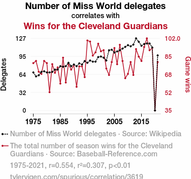 - The spurious research paper: Crowning Connections: A Statistical Study of Miss World Delegates and the Cleveland Guardians Wins