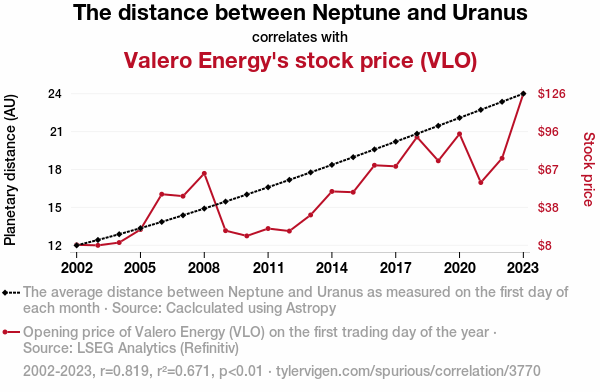 - The spurious research paper: Out of This World: The Celestial Correlation Between the Distance from Neptune to Uranus and Valero Energy's Stock Price