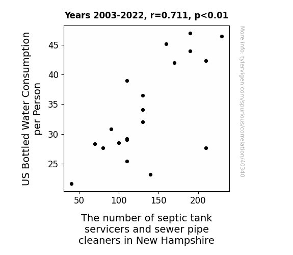 See what else correlates with The number of septic tank servicers and sewer pipe cleaners in New Hampshire