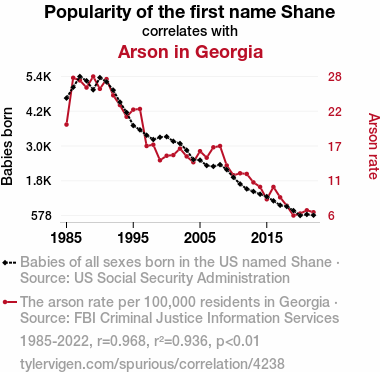 As the popularity of the name Shane decreased, there were fewer people shouting "Shane! Shane! Fire's not the answer!" in Georgia, leading to a decrease in arson. It seems like there was a correlation between the name Shane and the flame game in Georgia. Who knew that the key to fire prevention lay in the name of the game itself? It's a conundrum as perplexing as a riddle in a burning building!