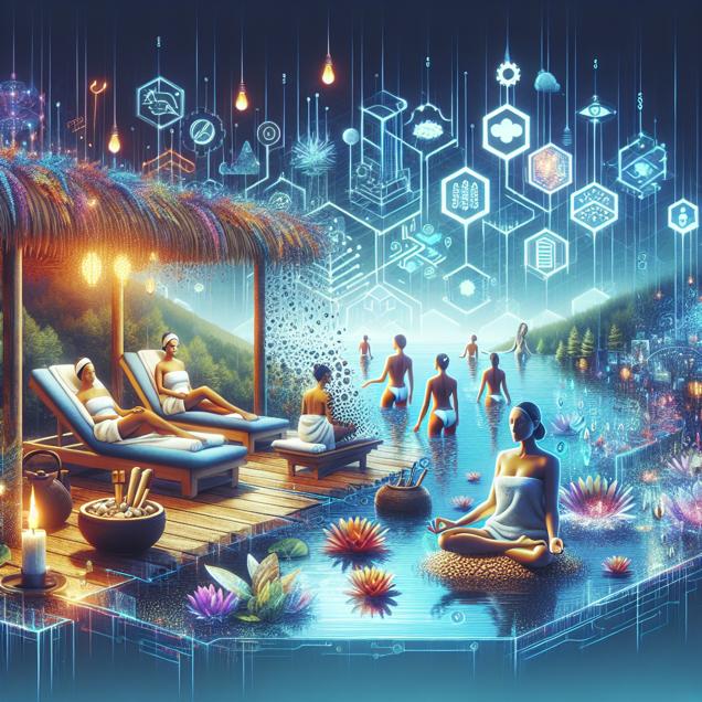 ChatGPT: Prompt: Create an image that combines the serene ambiance of a Mississippi spa with the cutting-edge atmosphere of a tech startup. Show a tranquil spa environment with people receiving soothing treatments while also hinting at the innovative brainstorming sessions of tech creators. The scene should exude a cyber folk aesthetic, blending natural spa elements with futuristic and artistic touches, symbolizing the harmonious fusion of relaxation and creativity.
