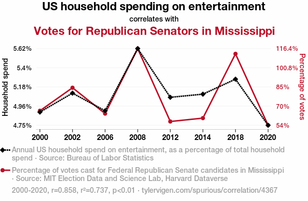 - The spurious research paper: EntertainMint to Win It: The Correlation between US Household Spending on Entertainment and Republican Votes for Senators in Mississippi