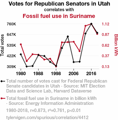 - The spurious research paper: Republican Votes, Fossil Fuels, and Utah's Quirks: A Quirky Correlation