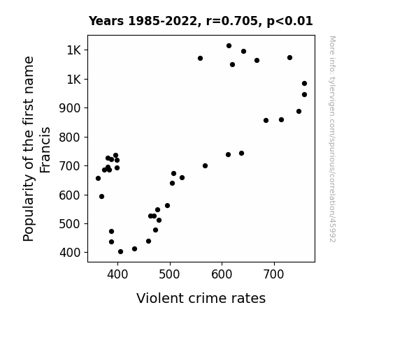 See what else correlates with Popularity of the first name Francis
