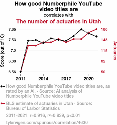 User prompt: Please make up a funny explanation for how an increase in How good Numberphile YouTube video titles are caused The number of actuaries in Utah to increase. Make it feel plausible.