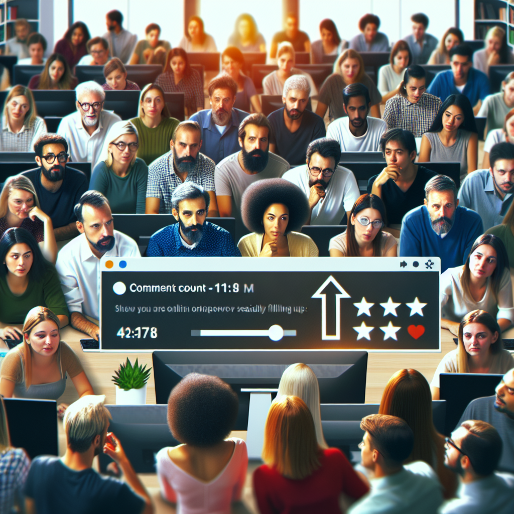 Prompt: Generate an image featuring a meme-style depiction of a crowded computer lab, where a group of people named Rosario gather around a computer screen. They are engaged in enthusiastic discussions about Computerphile videos. The visual should illustrate the comment count on the video steadily increasing, reflecting the active participation of the Rosarios. The room should buzz with lively conversations, showcasing their impact on the comment section and the popularity of their name in a fun and engaging way. The depiction should include only scenes, people, and objects, it should not include text or speech bubbles.