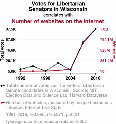 User prompt: Please make up a funny explanation for how an increase in Libertarian votes for Senators in Wisconsin caused Number of websites on the internet to increase.