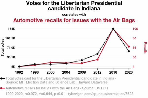 - The spurious research paper: Air Bags and Ballots: Unpacking the Relationship Between Libertarian Presidential Votes in Indiana and Automotive Recalls