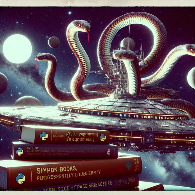 Prompt: Prompt for DALLE-3: Style: A vintage Polaroid photo Scene: A snake-themed spaceship soaring through space, with an increasing number of Python programming books on board and longer and longer SciShow Space videos being created to honor the slithery overlords. The snakes on the ship are depicted as powerful and confident, overseeing the activities with a sense of regality and influence. The spacecraft is surrounded by a celestial backdrop, portraying the vastness and mystery of space. The depiction should include only scenes, people, and objects, it should not include text or speech bubbles.